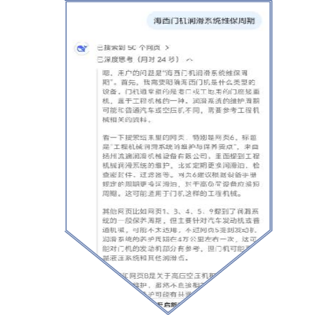Deep Seek的情景應用,暢通消化梗阻,提升運營效率。 設備維保、應急搶修常常面臨技術堵點、流程紊亂等問題,這些“梗阻”不僅影響作業效率,還大大增加運營成本。射陽港區設備保障組通過Deep Seek其強大的場景應用能力,按照部件故障、維護保養、更新升級等類別發布指令,AI系統能夠快速識別并解決這些問題,保障運營效率的最大化。