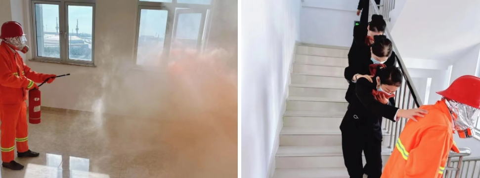 消防知識講座從火災(zāi)的分類、消防器材的使用、保養(yǎng)等方面向大家生動講解了消防安全重要性。實操模擬火災(zāi)現(xiàn)場,保安組臨危不懼,一隊手提滅火器、拔掉保險銷、對準火焰根部噴射,“大火”很快被撲滅;另一隊指揮大家用濕毛巾捂住口鼻,彎腰低姿態(tài)前行,有序地撤離到安全區(qū)域。通過培訓演練,進一步增強了安全意識和臨危不亂的心理素質(zhì),以實際行動筑牢了港區(qū)的“防火墻”。