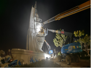 隨著最后一組LED燈光調試完成,鹽城港響水港區入口處,一座高17米的藍白色地標建筑正式點亮。這座以“乘風破浪”為設計理念的“精神堡壘”,歷經三個月攻堅建設,成為展示港區形象、服務城市交通導航的多功能地標。