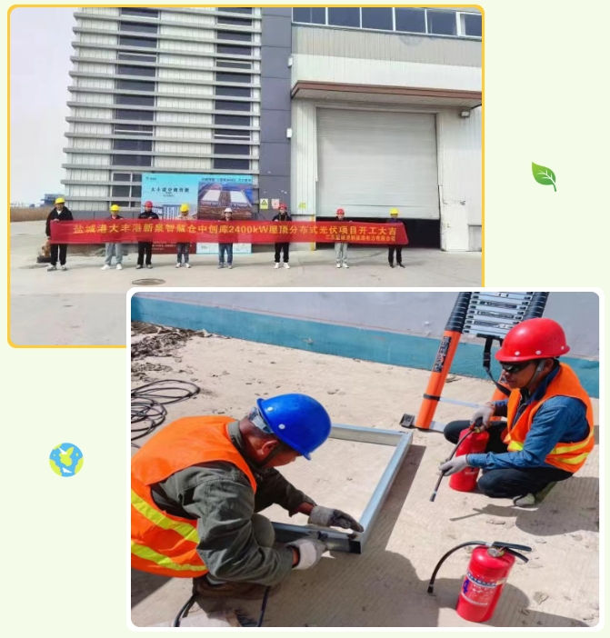 走進大豐港中創(chuàng)智能倉庫的2.87兆瓦光伏項目建設現(xiàn)場,工人們正按照項目施工進度計劃,分片區(qū)、分方陣有序開展搬運材料、打樁基、搭建光伏支架、組裝光伏組件以及建設升壓匯集站等工作。自項目開工以來,在確保工程質量、環(huán)保達標和安全生產(chǎn)的前提下,項目組倒排工期,全力推進,力求項目早日建成、投產(chǎn)、見效。據(jù)了解,由新能源電力公司建設的12座光伏電站,總容量約 10 兆瓦,年發(fā)電量約1045萬度,每年約節(jié)約標準煤3446噸,減少二氧化碳排放量1.02萬噸,為集團綠色轉型注入強大動力。