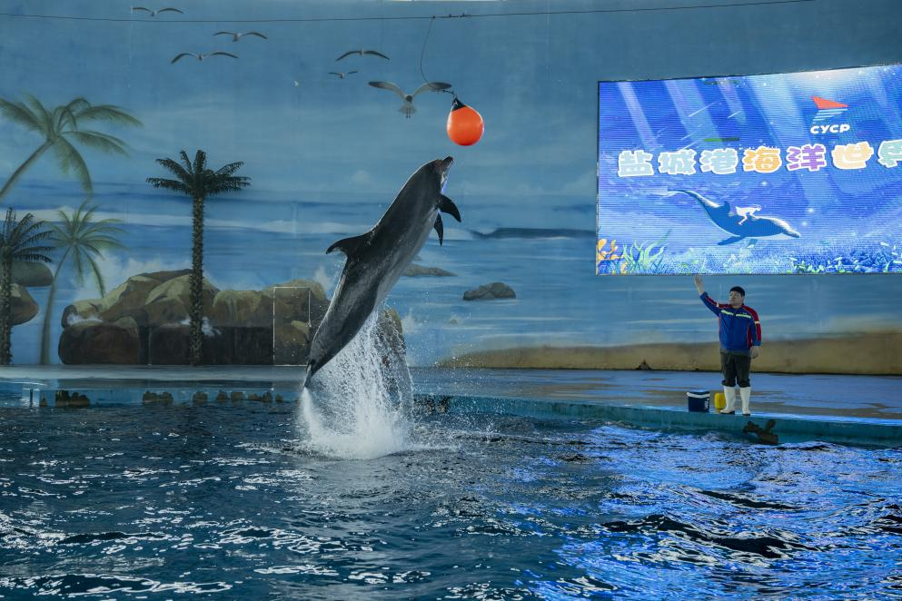 海洋世界劇場(chǎng)里的小海豚個(gè)個(gè)“身懷絕技”,在空中飛躍、水中漫步,上演一場(chǎng)場(chǎng)視覺(jué)盛宴,也帶來(lái)“港口+文旅”的海洋旅游新模式。