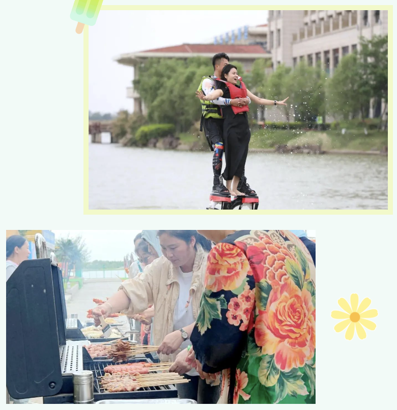 此次“港泊狂歡?去浪一夏”夏日盛宴不僅在游客接待量上表現(xiàn)出色,在推動文旅集團“五朵金花”產(chǎn)業(yè)發(fā)展方面也成效顯著。除了水上運動項目,鹽城港文旅集團還注重配套服務的完善,全力滿足游客游、購、娛、商及吃、喝、玩、樂的多樣化需求。日月湖畔錯落有致的帳篷營地,燒烤區(qū)飄散的煙火氣與日月湖相映成趣,為游客提供了親近自然的休憩空間;莎士比亞國際商貿(mào)小鎮(zhèn)充滿異域風情,游客在此選購全球好物。這些豐富的配套設施,使得日月湖不僅是水上運動的樂園,更是綜合性的休閑度假勝地,進一步提升了對周邊游客的吸引力,無論是家庭出游還是團隊團建,都能在這里找到屬于自己的樂趣。