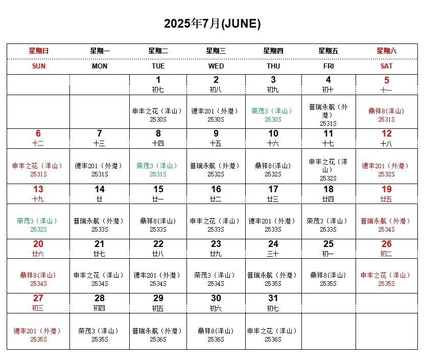船期速遞丨叮咚!“滬鹽專線”七月船期表已到達