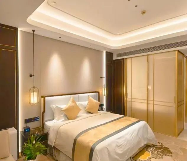 407間雅致客房,30㎡起跳的寬敞格局,是秋日舒展身心的最佳畫布。憑窗遠眺,花園層林盡染,日月湖碧波映照著高遠秋空。2025煥新升級的智能客房,讓舒適觸手可及:一鍵切換閱讀暖光或安眠模式,智能窗簾開合間,湖光秋色盡攬入懷。