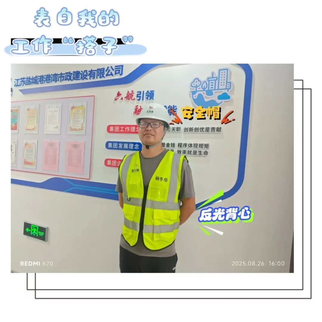 “每次踏入現(xiàn)場,安全帽為我筑牢‘防護墻’,反光背心讓我在環(huán)境中‘醒目在線’,這對‘黃金搭子’,是守護安全的底氣!就像七夕里的雙向奔赴,我們互相守護,在安全路上‘不離不棄’。”