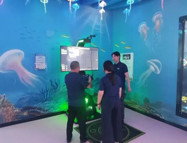 “您好,體驗4D影院前請確認安全帶扣緊,觀影中若有不適可隨時示意。”在“動感海洋影院”入口,老員工成龍江正向新員工朱宇林、劉莉娟演示服務(wù)話術(shù)與應(yīng)急要點。老員工結(jié)合升級后板塊特色,從場館動線引導(dǎo)、展品講解到4D設(shè)備、VR區(qū)安全操作,開展“一對一”帶教,傾囊相授服務(wù)經(jīng)驗。“跟著成叔學(xué)習(xí),我不僅記熟了知識點,還會按游客年齡調(diào)整講解方式,現(xiàn)在應(yīng)對提問不慌了。”新員工劉莉娟自信說道。