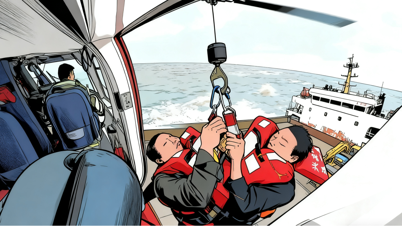 2022年12月11日,受寒潮大風影響,在廣東珠海擔桿島附近海域,一艘貨船遭遇風浪失去動力,觸礁進水擱淺,船上3人棄船求救。遇險3人被救助直升機救起。