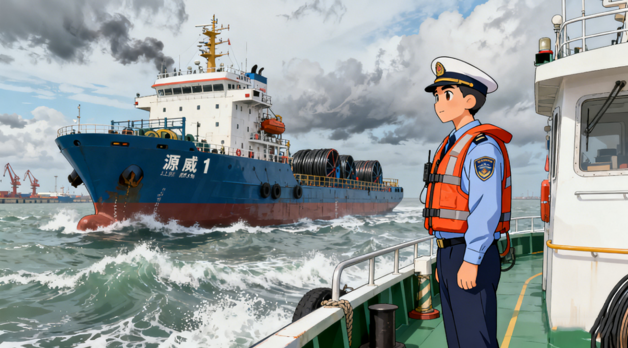 作業(yè)過程中引航員手持對(duì)講機(jī)精準(zhǔn)發(fā)令,拖輪協(xié)同配合穩(wěn)控船身;調(diào)度室里,實(shí)時(shí)數(shù)據(jù)跳動(dòng)間,靠離泊時(shí)間被科學(xué)壓縮。這高效的配合,為海纜吊裝、規(guī)范綁扎擠出了寶貴時(shí)間,讓每一批海纜都能按時(shí)登船,也讓全年引航任務(wù)實(shí)現(xiàn)“零差錯(cuò)”。