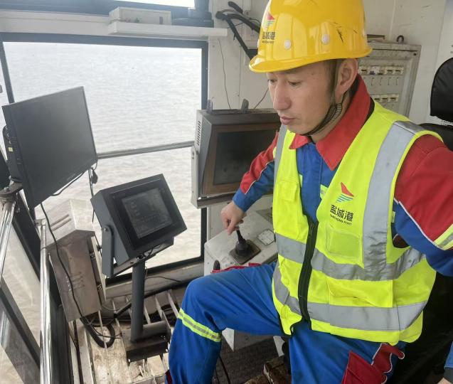 “少說多做,落地為實(shí)”是安全巡檢員的行動(dòng)信條。他們不尚空談,只專注于吊鉤的精準(zhǔn)起落、貨物的平穩(wěn)安放。寒冬里頂著凜冽寒風(fēng),酷暑中迎著烈日暴曬,他們的身影在碼頭各處穿梭,專注的眼神從未動(dòng)搖,汗水浸透工裝,實(shí)干澆灌收獲,他們用最樸素的行動(dòng),書寫著鹽城港高質(zhì)量發(fā)展的篇章。
