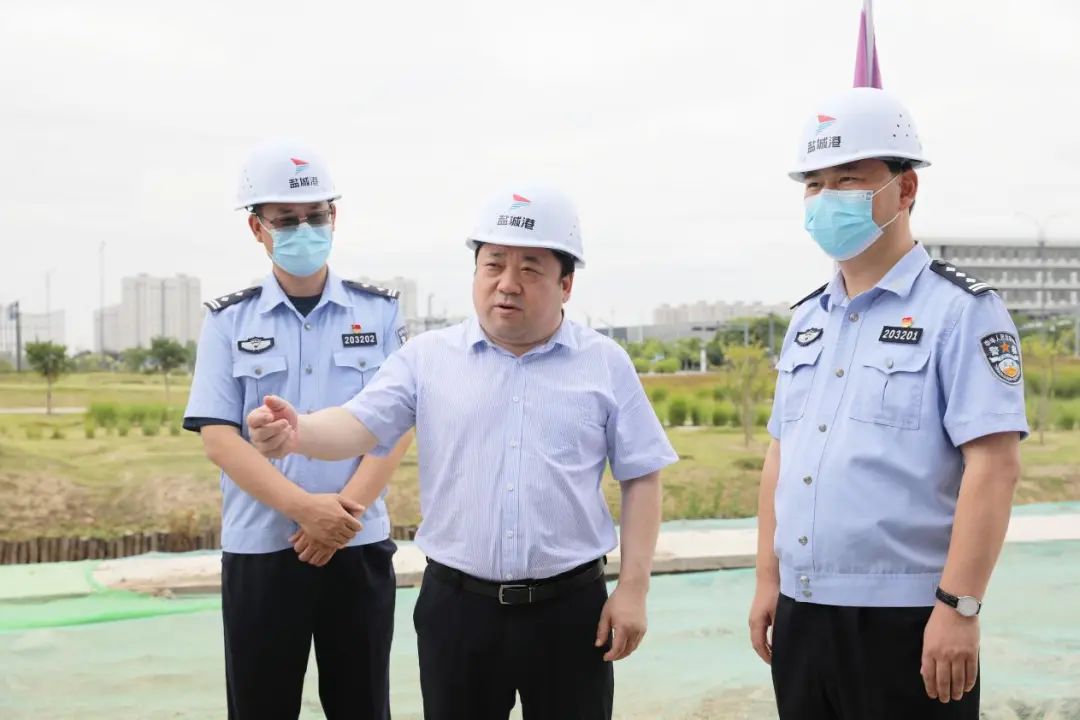 周正雄強調(diào),時值高溫季節(jié),要結(jié)合工作環(huán)境和作業(yè)實際,守牢安全底線,切實做好防暑降溫措施,做好高溫天氣消防安全隱患排查,安全有序推進項目建設(shè),切實為鹽城邊檢、口岸開放管理等業(yè)務(wù)工作后勤做好保障,真正讓邊檢大樓成為鹽城出入境邊防檢查站與鹽城港集團之間友誼的標志。