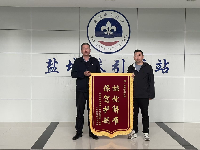 接到求助后,引航站迅速組織專業(yè)團隊趕赴現(xiàn)場。在登輪勘察后,團隊成員綜合研判氣象條件與作業(yè)進度,決定待貨物卸載完畢后再擇機出港。當晚22:00,引航員登輪,在拖輪配合下頂風浪開始引航。面對復(fù)雜海況,引航員依托豐富經(jīng)驗謹慎操縱船舶,通過實時監(jiān)測風浪、科學規(guī)劃航線,確保船舶以安全航速穩(wěn)步離港。船舶航行途中遭遇突發(fā)陣風,引航員迅速采取應(yīng)急措施,及時修正航向,歷經(jīng)數(shù)小時緊張作業(yè),最終成功將“探界者”輪安全引領(lǐng)至外海避風錨地。事后,江蘇鹽城港海融石化碼頭有限公司專程向鹽城港引航站贈送錦旗,書以“排憂解難 保駕護航”表達謝意。