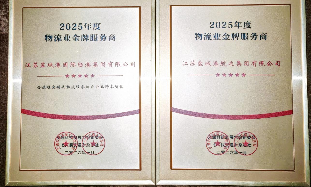 近日,在青島舉辦的第六屆中國(guó)交通科技發(fā)展大會(huì)上,鹽城港陸港集團(tuán)、航運(yùn)集團(tuán)憑借各自的“全流程定制化物流服務(wù)”創(chuàng)新模式和“綠色智慧賦能多式聯(lián)運(yùn)高質(zhì)量發(fā)展”特色實(shí)踐,雙雙榮獲“2025年度全國(guó)物流業(yè)金牌服務(wù)商”稱(chēng)號(hào)。