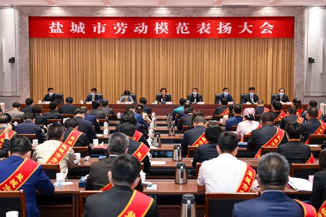 下午3時,大會開始,全體起立,奏唱國歌。會上宣讀《中共鹽城市委鹽城市人民政府關(guān)于表揚鹽城市勞動模范的決定》,授予300名同志“鹽城市勞動模范”稱號。在喜慶的氣氛中,身披紅色綬帶的市勞動模范代表登上主席臺,市領(lǐng)導(dǎo)向他們頒發(fā)榮譽證書和獎?wù)隆{}城郵政公司快遞員陳國勇代表市勞動模范宣讀倡議書,號召全市廣大勞動者勤奮勞動,扎實工作,銳意進取,勇于創(chuàng)造,以昂揚向上的精神狀態(tài)和“比學(xué)趕超”的工作干勁,再創(chuàng)新業(yè)績、建功新時代,以實際行動迎接黨的二十大勝利召開。