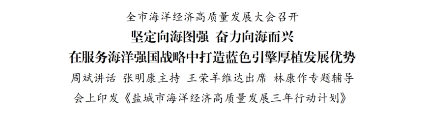 會上,印發了《鹽城市海洋經濟高質量發展三年行動計劃》及有關政策措施,有關部門和地區作交流發言。