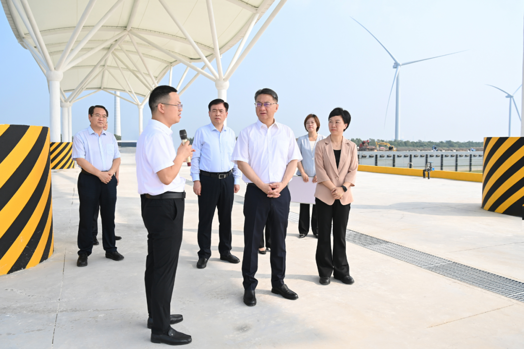 周斌一行首先調研了我市推進海洋經濟高質量發展的項目現場。黃沙港國家中心漁港二期項目建設現場機器轟鳴,施工正酣。周斌了解項目建設進展,要求強化與行業龍頭企業合作,加快工程進度,深耕海洋牧場,做優配套服務,加大宣傳推介力度,不斷提升漁港核心競爭力。在射陽縣沿海治安防控中心,周斌聽取工作介紹,叮囑要強化使命擔當,運用科技手段,進一步加強邊海空防能力建設,為海洋經濟高質量發展保駕護航。周斌來到中國質量認證中心射陽分公司,詢問業務開展情況,要求公司發揮好資源優勢、品牌價值、科研條件等作用,推動更多認證標準與國際接軌,持續放大鹽城綠色發展優勢。