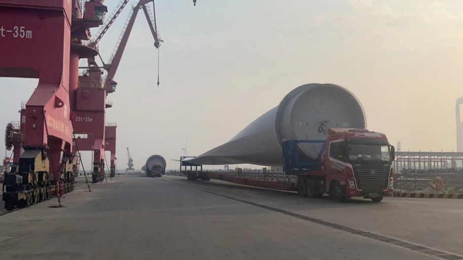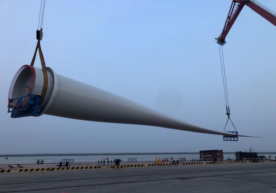 企業有希望丨追夢風電港 負重求突破射陽港區再創風電葉片裝卸長度新記錄