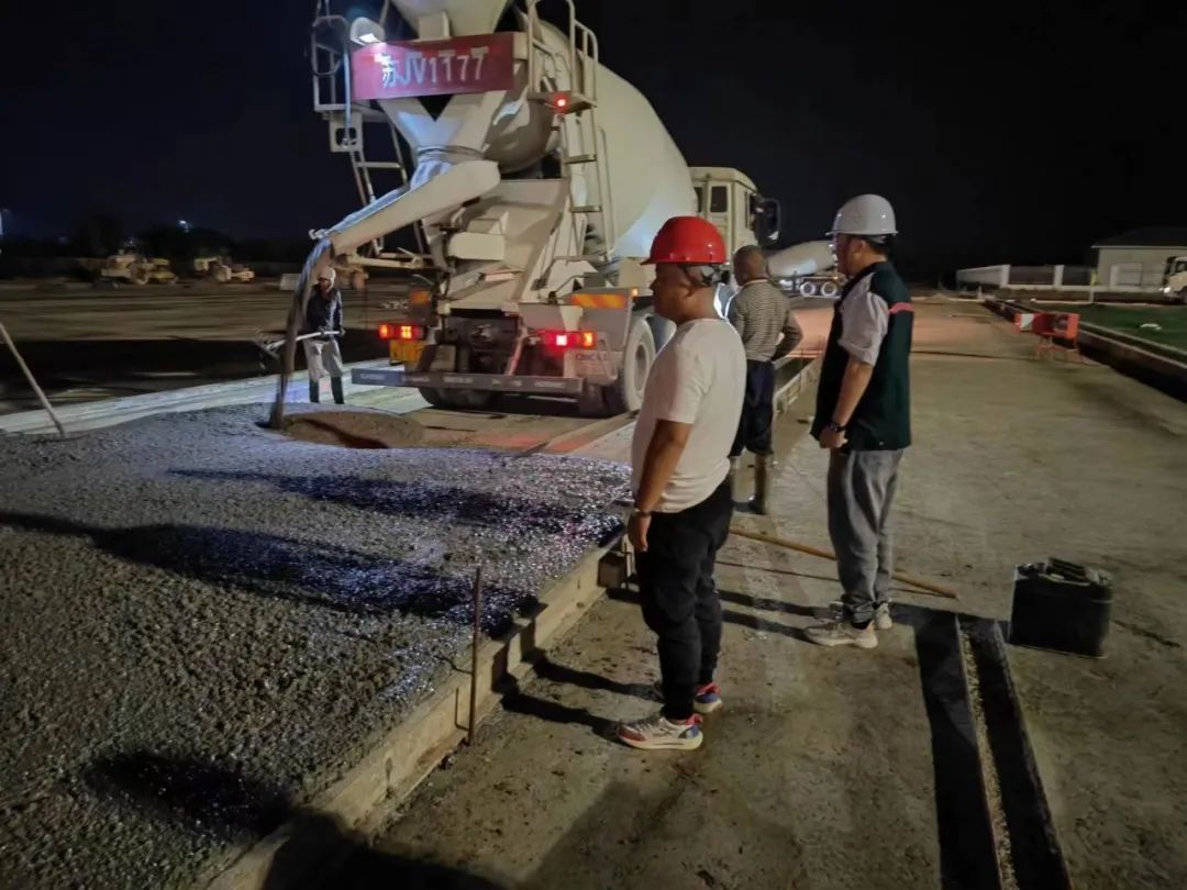 在工程建設公司亭湖港區堆場項目現場,挖掘機、吊車、攪拌機、運輸車來回穿梭,工人們緊張而有序的忙碌著。項目部提前制定了詳細的施工進度計劃,根據工程進度需要,實行三班工作制,“白+黑”值班模式,保證連續施工,同時嚴格落實鹽城港集團“三位一體一穩”部署要求,確保項目施工安全、有序進行,全力沖刺竣工節點,確保國慶期間項目建設按序時推進。