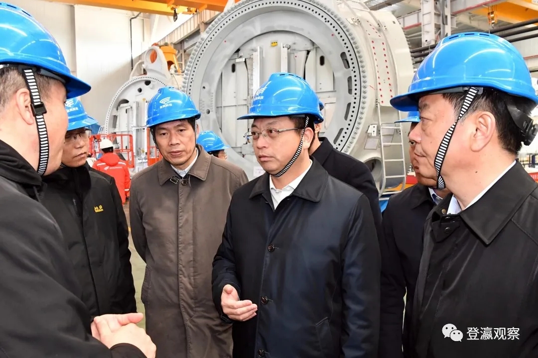 ▲市長曹路寶察看金風科技整機總裝廠和16MW傳動實驗室