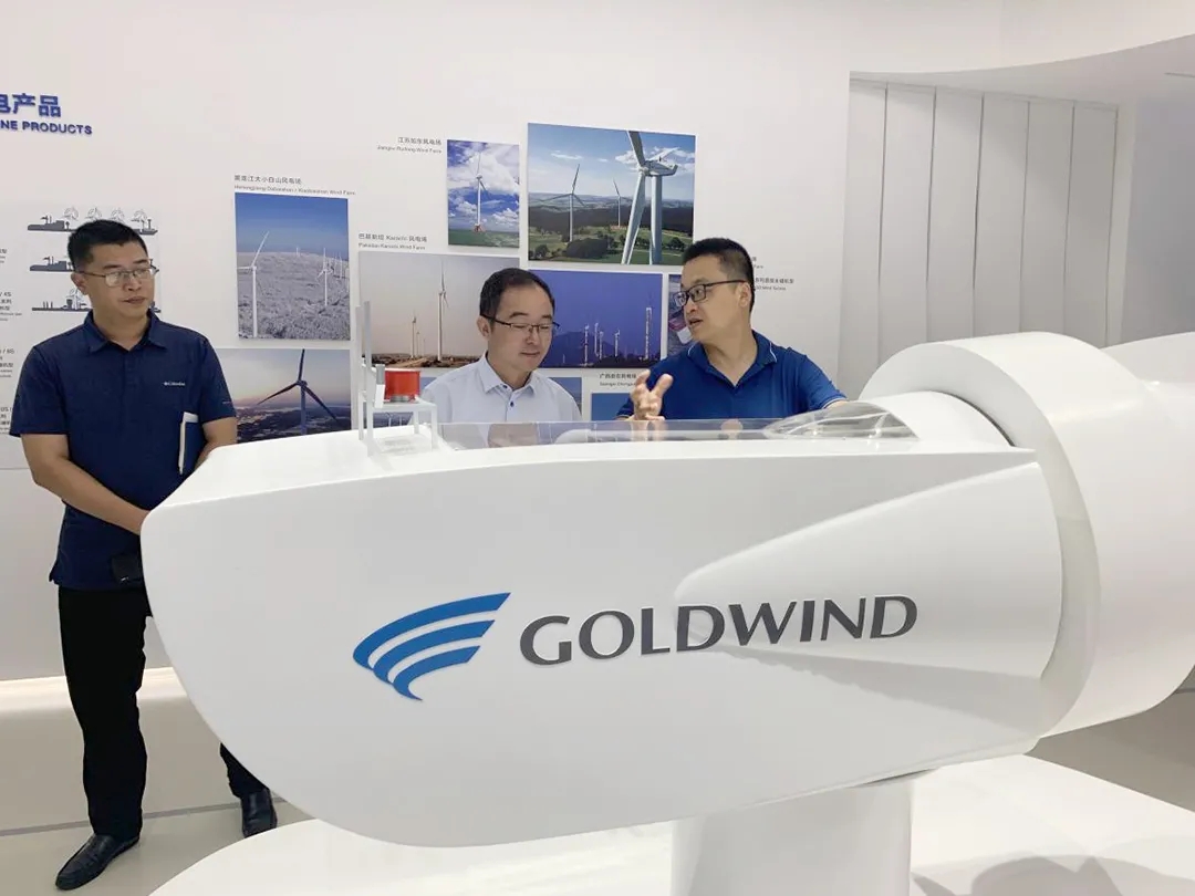 金風(fēng)科技制造中心總經(jīng)理潘晉對范云飛一行的到訪表示歡迎,并陪同參觀了“碳中和”智慧園區(qū)、全球監(jiān)控中心、能源互聯(lián)網(wǎng)及交直流微網(wǎng)研發(fā)測試中心和電控制造廠等項目載體。金風(fēng)科技制造中心總經(jīng)理助理李恒介紹了金風(fēng)科技相關(guān)發(fā)展情況。