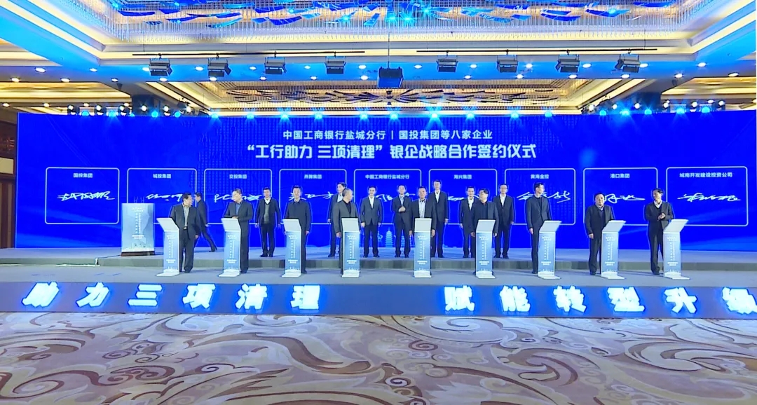 12月17日下午,鹽城市人民政府與中國工商銀行江蘇省分行“工行助力三項清理”政銀戰(zhàn)略合作簽約活動隆重舉行。集團黨委書記、董事長、總經(jīng)理周正雄參加活動并與工行鹽城分行簽訂了《戰(zhàn)略合作協(xié)議》。
