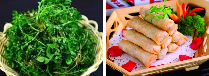 薺菜是最早報(bào)春的時令野菜,涼拌、清炒、做湯、做餃子都奇鮮無比。但鹽城人更愛的薺菜美食非薺菜春卷莫屬,皮薄餡多、金黃飽滿、清脆可口、鮮香四溢的春卷,咬一口滿嘴芬芳、齒頰留香。