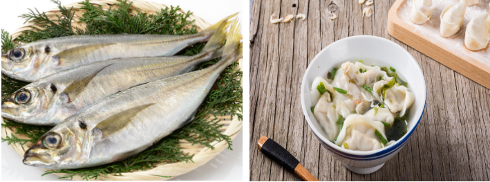 刀魚餛飩的制作主要是制皮和制餡。餛飩皮選用精白面粉加入蛋清和刀魚骨架湯代替水來和面。制成的皮,韌性足,味鮮,久煮不爛,晶瑩潤澤。制餡精選早春出水的新鮮肥碩的雌刀魚,口感細(xì)、滑、香、鮮,回味無窮。