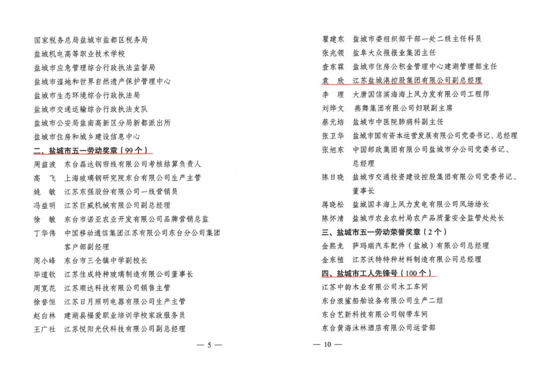 近日,鹽城市總工會印發《關于授予2023年鹽城市五一勞動獎和工人先鋒號的通知》,我集團再獲三項表彰。